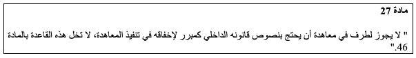 وفقا لمبدأ علوية المعاهدات الدولية على التشريع الوطني، تُعرف معاهدة فينا حول قانون المعاهدات الدولية بمعاهدة المعاهدات واعتمدتها الجمعية العامة للأمم المتحدة بموجب قراري الجمعية العامة للأمم المتحدة رقم 2166 المؤرخ في 5 ديسمبر/كانون الأول 1966، ورقم 2287 المؤرخ في 6 ديسمبر/كانون الأول 1967، ودخلت حيز النفاذ في 27 يناير/كانون الثاني 1980. وقد انضمت إليها الدولة الليبية في 28 ديسمبر/كانون الأول 2008، وقد جاء بالمادة 26 تحت عنوان العقد شريعة الطرفين أن كل معاهدة نافذة ملزمة لأطرافها وعليهم تنفيذها بحسن نية. وحيث ورد بالمادة 27 من ذات المعاهدة تحت عنوان القانون الداخلي واحترام المعاهدات: